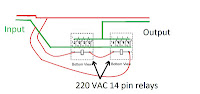 Below circuit is about over voltage protection related, here 2 relays (220 v) are used of 14 pins, pins # 13 & 14 of both relays are kept in series, and both 13 pin of 1st relay & 14 pin of 2nd relay connected direct to main AC, at the other end pins 9 to 12 of both relays connected to one of the main input, output taken from pins 1 to 4 , Normally all pins 9 to 12 of both relays connected to pins 1 to 4,It means that in normal condition relay will allow supply to house , normal 220 V AC voltage is unable to energize both relay in series, but if any over voltage (double phase ) observed at the input , both relay will be energized & supply will be disconnected .