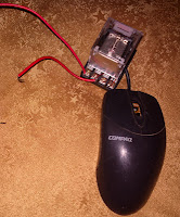 In this circuit one relay & PC mouse were used, no such a electronic circuit were used , here 2 micro switch & 8 pin DPDT relay 220 v used, if you see the connections of the relay you will see that main AC 220 were connected to points 7 & 8, another wire taken from pin 6 to pin 2 through micro switch (OFF), 2 wires were taken from pins 8 & 2 to the micro switch (ON), Device to be controlled wires are taken from pins 3 & 1.In the presence of 220 AC if we press ON switch relay will energize while current flow through pin 7 & 2, where current will flow through switch from pin 8 to pin 2 , both 7 & 2 pins are the rely energizing points ,when relay energized it will remain energize due to pin 8 & 6 to pin 2 through micro switch ( OFF ) , because current will flow from pin 8 to pin 6 ( now connected due to relay energized ) .By pressing switch OFF supply will be disconnected between pin 6 & 2, relay will become in normal condition