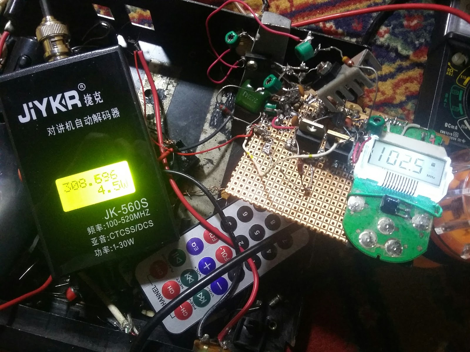 FM transmitter having a stable frequency & with a high power (Range) is a tough task to do , actually you can buy a high power FM transmitter , but hard to make it due to the restriction as well as parts availability in the certain areas , in my this circuit the input were taken from the Car MP3 modulator , antenna point at the PCB can be easily found , where they always printed the every point on the PCB , if not found the antenna point then you can use the field strength meter (FSM) , antenna will be the peak FSM reading , this signal were then given to the circuit , sometime the RF power from the MP3 found low which cannot derive the first transistor , for this biasing required from positive supply to the transistor base to boost some hove the input signal , 30 k to 56 k resistor can be used for the biasing ,in first stage I used 2sc2407 transistor ,in the other next stages both 2sc3950 were used , very cheap transistors ,where all these transistor can work very nice in the FM range, RFC were used at the transistor collector which can be easily available in the market RFC for FM rage will be 0.56 mh or 0.68 mh (Micro henry) you don’t have to wound the coil , you can use 2N2219 , 2N3866, 2N2222 instead 2sc2407 , instead of 2sc3905 , you can use 2sc1971 , 2n3553 etc.